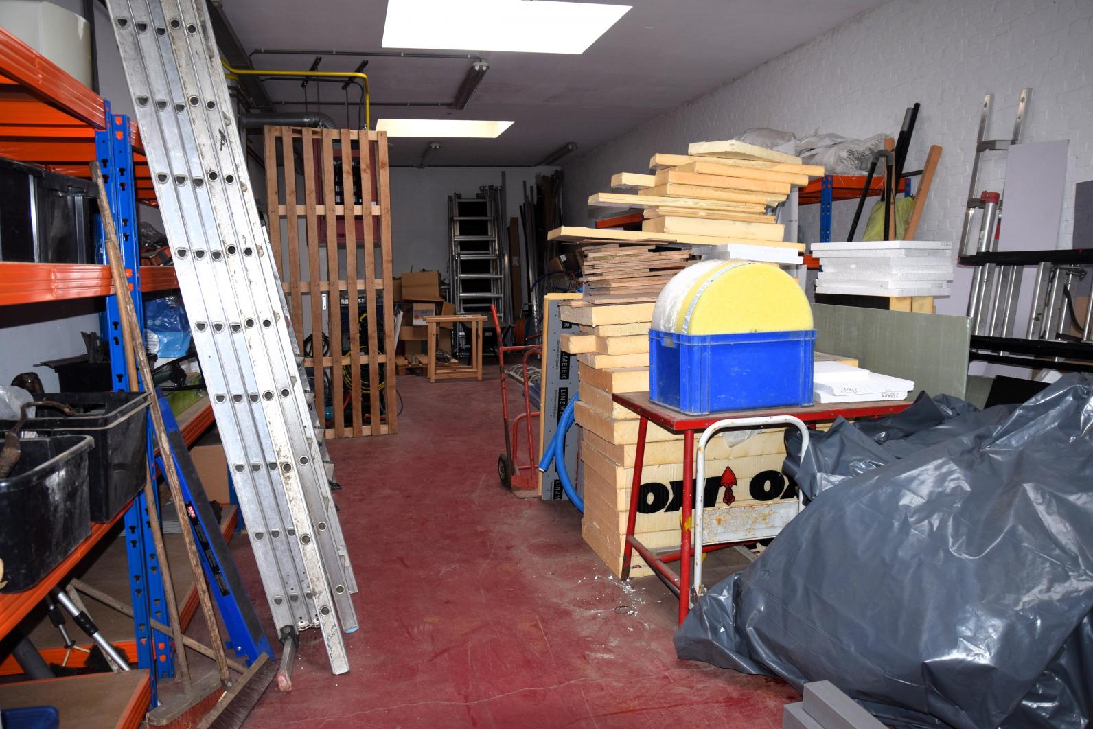 Huidige indeling: Ontvangstruimte, 2 zeer grote burelen, kitchenette, apart toilet, magazijn in 2 delen (tussenwand kan verwijderd worden), kleine tuin.
