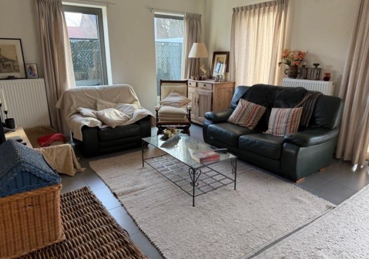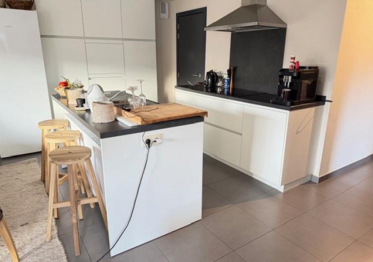 Gezellige living met open keuken incl. toestellen (kookvuur, dampkap en ijskast)