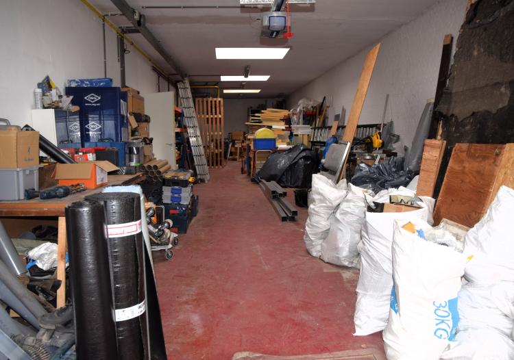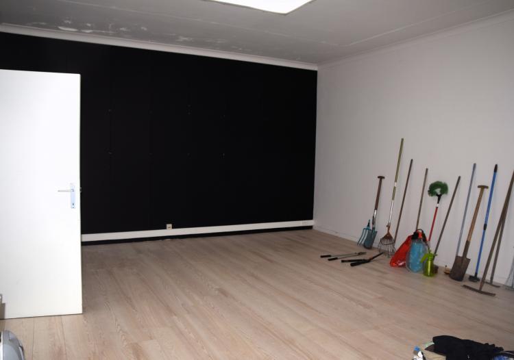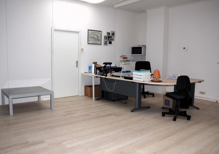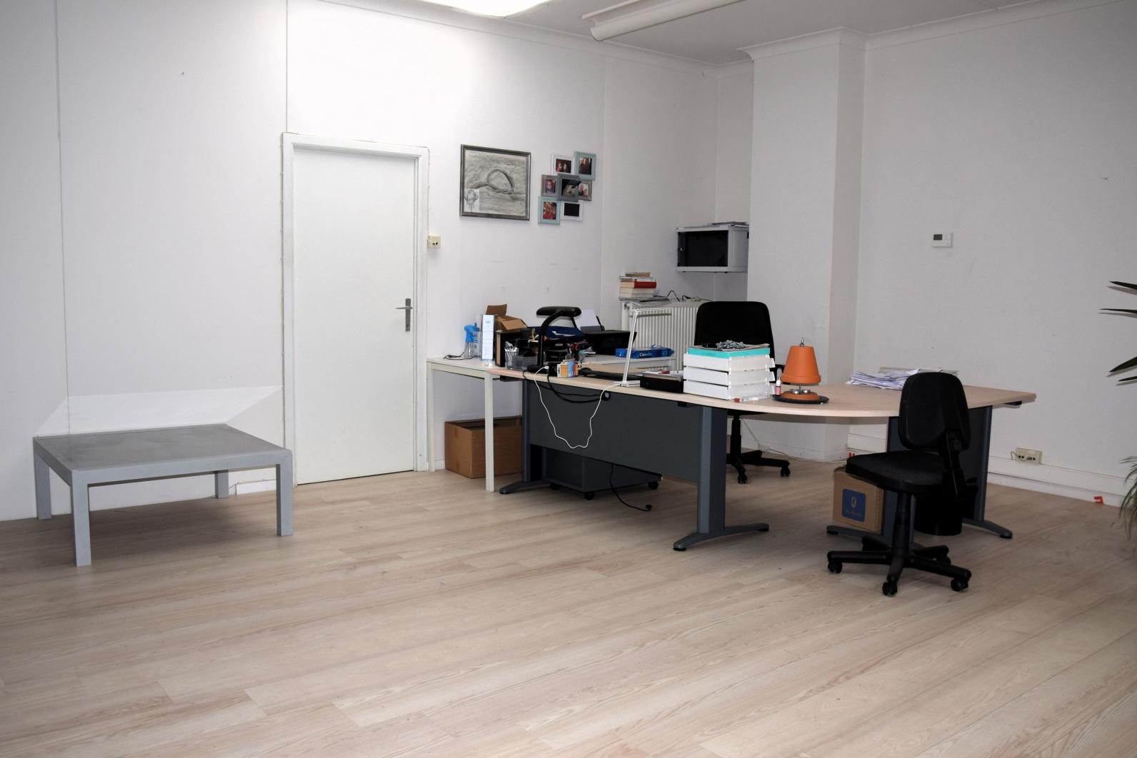 Huidige indeling: Ontvangstruimte, 2 zeer grote burelen, kitchenette, apart toilet, magazijn in 2 delen (tussenwand kan verwijderd worden), kleine tuin.